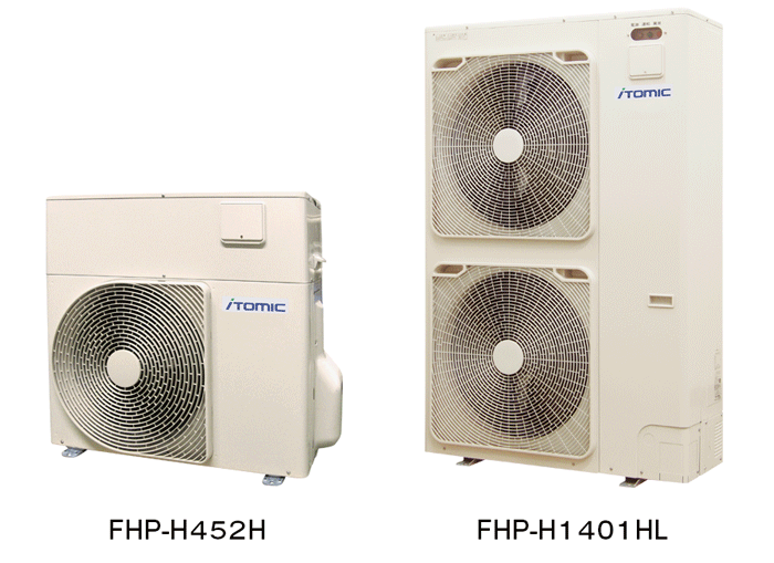 導入いただいたFHPシリーズは、各種の温熱利用に対応する循環加温ヒートポンプです。加熱能力と沸かし上げ温度の違いで3シリーズをラインナップしています。H452HとH1401HLは沸き上げ温度64℃、H1401Sは沸き上げ温度90℃で、各種の温熱利用に適しており、特にハイブリッド方式による配管加温、貯湯タンクの循環加温などの用途には多くの実績があります。