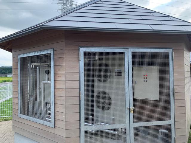 みふねの里保育園では、カーボンニュートラルの実現に向けた取り組みにおいて、施設全体をオール電化かつZEB認証を取得するとの方針が採られており、その一環として当社の業務用エコキュートを導入いただきました。ガス給湯機に比べて初期費用は高めですが、脱炭素社会への貢献という観点から採用に至りました。他社製品とも比較検討された中で、当社は保育園の規模や給湯使用量に対応する幅広くかつ柔軟な機種ラインナップを有しており、さらに価格面でも評価されました。具体的には、加熱能力35kW・タンク容量2000Lの機種と15kW・1000Lの機種の組み合わせが、設置スペースと給湯量との両面で最適との判断をいただきました。また、施設には太陽光パネルも設置されており、再生可能エネルギーを一部活用して運用されています。