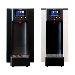 導入いただいたEHWD-14は、ワンプッシュで最高99℃の熱湯を出湯することができます。押している間だけ出湯する機能だけでなく、任意で設定した湯量を出湯できる「定量出湯機能」を備えた製品や温度変更を可能にした「Kタイプ(カフェエディション)」もご用意(今回導入)。湯温が下がりにくく繰り返したくさんのお湯を使うことができる「ステップボイル機能」は全シリーズ標準装備しています。水道管と繋ぐだけで直ぐに利用することが可能で、排水処理は不要です。