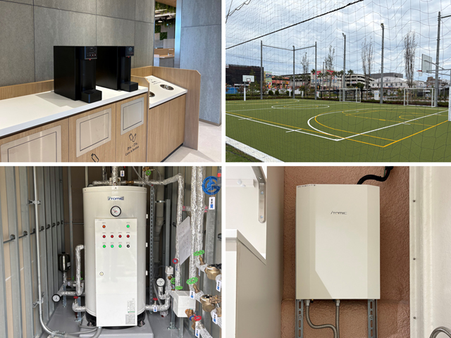 ALFALINK様の各物流施設には、テナントへのサービス向上の一環として当社の給湯設備をこれまでに数多く導入して頂いています。ホットウォーターディスペンサーのEHWDはカフェテリア(共用部)での飲食用に導入いただいていますが、今回はEHWDだけでなく、フットサル施設でのシャワー用途として大型電気温水器のESFKと、バックアップ用に電気瞬間湯沸器のEIZを導入いただきました。